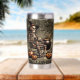 Esqueleto Personalizado De Halloween, Arañas Y Murciélagos Insularon Tumbler. Divertido, Spooky, Tumbler de Halloween que puedes personalizar con un nombre para un regalo o guardar para ti mismo. ¡A todos les encantará el esqueleto en la mecedora esperando Halloween! Ideal para llevar al trabajo, en el coche, eventos deportivos y mucho más.