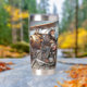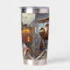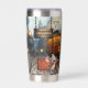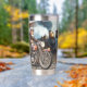 Thermal tumbler featuring a funny collage of vintage transportation images with a grandpa on a bike and cute mouse.