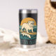 This retro-inspired surf art features a too-cool bulldog who rides an endless wave in front of the setting golden sun. "Get On Board" is written in teal vintage coastal font. Designed with old-school California energy, the distressed look gives it an authentic feel, like it was pulled straight from a vintage surf shop. This insulated tumbler is perfect for beach days, surf sessions and as an everyday statement accessory. Stay salty, and hydrated.