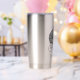 Un diseño de Halloween de "Mamá Gótico" de la gótica colección de ducha de bebé "Un bebé se está preparando" otoño. Presenta un antiguo carro victoriano de bebés, cuerdas negras y calabazas con tinta negra, todo contra un elegante tambor de robo inoxidable. Texto editable de "Mamá Gótico" debajo. Personalizar con cualquier texto para hacerlo único suyo. ¡Hace un gran favor de Baby Shower gótico de Halloween!