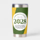 Las universidades, universidades, escuelas secundarias e institutos de enseñanza superior pueden añadir sofisticación a los productos de graduación con este moderno y alto tumbler contemporáneo, que incluye elegantes letras enmarcadas en bosques de fondo verde, dorado y blanco. Personalizar con el nombre de la escuela/universidad y el logo/lema/sello académico. Los colores y tipos de letra se pueden modificar según se desee. El reverso muestra un diseño idéntico. Diseño © W.H. Sim, todos los derechos reservados. Ver más en zazzle.com/expressionsoccasions
