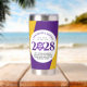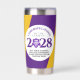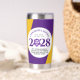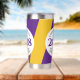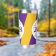 Las universidades, las escuelas secundarias y los institutos de enseñanza superior pueden añadir sofisticación a los productos de graduación con este moderno y alto tumbler contemporáneo, que incluye elegantes letras enmarcadas en el morado, el oro y el blanco. Personalizar con el nombre de la escuela/universidad y el logo/lema/sello académico. Los colores y tipos de letra se pueden modificar según se desee. El reverso muestra un diseño idéntico. Diseño © W.H. Sim, todos los derechos reservados. Ver más en zazzle.com/expressionsoccasions