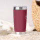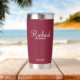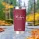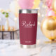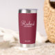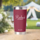 Regalos personalizados de Groomsman con el nombre personalizado del groomsman en un estilo de letra blanco moderno con el título y la fecha boda en modernos sans serif con el estilo de letra en rojo burdeos. También perfecto para el mejor hombre, padre de la novia, dama de honor, madre de la novia y más.