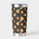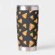 Guay y las rebanadas de pizza patrón Tumbler aislado gris oscuro. Monograma Personalice con su personalizado inicial y su nombre. Regalo de pizza único para comida, restaurantes, pizzerías... Jugoso vector pizza hecha con costra crujiente, queso, salami, champiñones, aceitunas y una rociada de orégano.