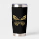 Un elegante fondo negro decorado con una falsa mariposa dorada. Personaliza y agrega tu nombre.