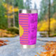 Happy Big Modern Orange Pumpkin on Purple and Pink Geometric lines.