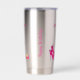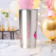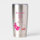 Modern and elegant, For the 50 years old fashionista's birthday personalised gift Insulated Tumbler. Beautiful a pair of high heels 👠 with bows and a cute colorful golden pink purse 👛 (hand bag) ,50 & Fabulous script hot pink fuchsia. You can easily change your name, fonts, colors, size and age number by clicking Zazzle's customisation options.