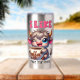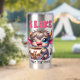 A funny, sarcastic, and colorful design showcases an adorable highland cow holding a steaming cup of coffee. The cow, with big blue eyes and a playful wink, has gray fur. Vibrant text reads, "I like coffee more than people." This charming design is available on various products, making it a perfect gift for coffee lover.