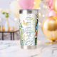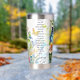 La bondad de Dios El diseño presenta un cautivador arreglo de flores acuarelas, sus tonos suaves y detalles delicados encantan a todo aquel que los encuentre. Una elegante flauta de mariposa entre las flores, le da un toque de elegancia y calidez. Pero la verdadera belleza yace en las letras de la canción que adornan el vaso. El coro dice: "Y toda mi vida has sido fiel" "Y toda mi vida has sido tan buena" "Con cada aliento que puedo" "Oh, cantaré de la bondad de Dios"