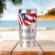 Este diseño presenta estrellas a lo largo de la parte inferior con el mensaje "Tierra del LIBRE por el VALOR" en lados opuestos del vaso. Si no quieres romper las copas de vino, esta es una dulce idea de regalo para acampar, picnics y más.