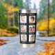 Moderna Y MEJOR PAPA DE CADA 18 Fotos Personalizados Columnas Insuladas Tumbler. Cree una taza de viaje personalizada y personalizado para un abuelo con un diseño de columna repetida alrededor del vaso con un total de 18 fotos, el título repetitivo sugerido BEST. PAPA. EVER. para cada columna y su texto personalizado individual debajo de cada columna en su elección de texto y color de fondo (mostrado con texto blanco sobre fondo negro). Realice cambios en EDIT. Hace un regalo ideal para un abuelo por su cumpleaños, el Día del Padre, el Día de los Abuelos o una fiesta. ASISTENCIA: Para obtener ayuda con la modificación o personalización del diseño, póngase en contacto con el diseñador ANTES DE PEDIRLO a través de Zazzle Chat o makeitaboutyoustore@gmail.com.