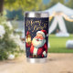 Celebrate the joy of the holiday season with this cheerful and nostalgic illustration of Santa Claus, beaming with warmth as he holds a glowing lantern amidst softly falling snowflakes. The phrase "Merry & Bright" arches gracefully above him in festive, hand-lettered typography, enhancing the cozy and magical mood. Rendered in a vibrant, vintage-inspired cartoon style, this design captures the essence of classic Christmas cheer with rich reds, golden light, and playful character expression. Ideal for evoking warmth, wonder, and seasonal nostalgia, it brings a timeless charm that resonates across generations. Perfect for holiday lovers drawn to whimsical retro vibes and joyful winter imagery. AI generated artwork.