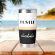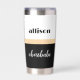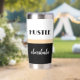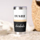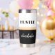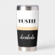 Hustle como un jefe nena Insulated Tumbler. Un diseño moderno de moda con una tipografía atrevida sobre un fondo blanco y negro dividido por un borde dorado de champán. Personalice el tumbler con su nombre y llévalo contigo dondequiera que te lleve el ajetreo.