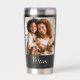 Being a mom is one of the most important jobs in the world. Show your favorite mom that you care with this custom photo, stainless steel insulated thermal tumbler. Simple white script calligraphy and sans serif typography, along with your personalized photo, overlay a black background. Personalize with the photo of your choice and the mom “established” year date when your first child was born. Add additional years for each child. And switch out “mom”, if desired, for however you call your mom or mum.
