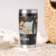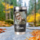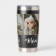 Custom Mom Established Modern Bold Script Black 3 Photo Insulated Tumbler with White Text on a Black Background. Replace the photos with your own and change the years to the year(s) you became a mom (add multiple years if you have more than one child). You can change "mom" to mum or mama if needed (leave the little square in place).