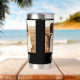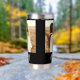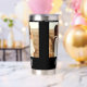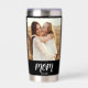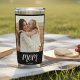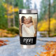 Sleek black water tumbler featuring elegant white Mom Est. script and personalized photos on both front and back. A modern, heartfelt design that keeps drinks perfectly hot or cold for busy moms wherever they go.