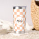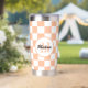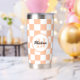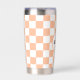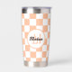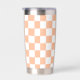 Muelle aislado de melocotón y retro geométrico blanco. Patrón retro geométrico controlado Botella de agua. Regalo práctico para gente activa. Patrón cuadrado geométrico retro de Guay. Naranja de la luz de las baldosas de época y damero blanco moderno.