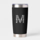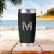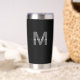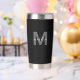 El diseño presenta un elegante fondo negro con una inicial gris en ambos lados, superpuesta por tu nombre en un elegante guión blanco para un toque personalizado que verás desde cualquier ángulo. Con su monograma de doble cara y su diseño funcional, esta taza es genial para tomar café o té en la marcha, ya sea que estés yendo a clase o en jet-set por todo el mundo. Todos los colores se pueden personalizar para que coincidan con el estilo. ¡Un gran regalo para las madres, hermanas de hermandad, mejores amigos o cualquiera que ame un poco de lujuria con su bebida matutina!