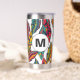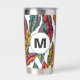 Patrón de hojas tropicales coloridas Monograma Vidrio Termal Personalizado de Café.