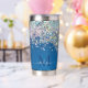 Azul verde azulado de lujo con vaso de agua holográfico de purpurina plateado aislado. Personalízalo fácilmente con tu nombre inicial. Simplemente haga clic en el botón "Editar usando herramientas de diseño" para modificar el texto, la redacción, el estilo de fuente, el tamaño de fuente y el color de fuente. Hace un regalo personalizado único. (c) El estudio Happy Cat Studio.