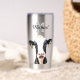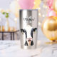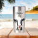 El regalo perfecto para el agricultor. Este diseño presenta una vaca Holstein con un monograma personalizado. El PErperfecto para el granjero lechero que necesita llevar su café matutino al granero para las tareas de ordeño.
