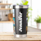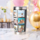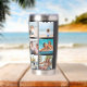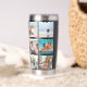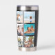 Crea tu propio vaso térmico de collage fotográfico personalizado con 12 de tus fotos favoritas en un simple diseño de rejilla junto con el nombre del monograma personalizado en la tipografía moderna.