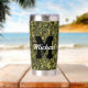 Un tumbler de camo fresco y resistente, el monograma puede ser personalizado para cualquiera.