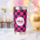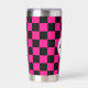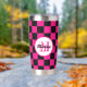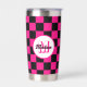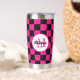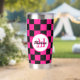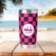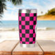 Monograma aislado de tumbler geométrico negro rosado caliente. Patrón retro geométrico controlado Botella de agua. Un regalo práctico para una mujer activa. Patrón cuadrado geométrico retro de Guay. Baldosa de época negra y damero moderno rosado caliente.