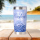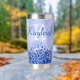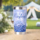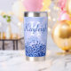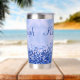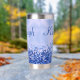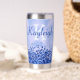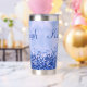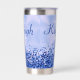 Disfrute de sus bebidas con estilo con este tumbler termal, con un diseño metalizado pulido y elegante de color azul con acentos purpurinas. Personalízalo con tu nombre de monograma y inicial para un toque único y elegante. Diseñado para mantener sus bebidas calientes o frías durante horas, este tumbler combina funcionalidad práctica con un aspecto moderno y de moda. Perfecto para el uso diario o como un regalo atento.