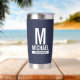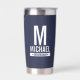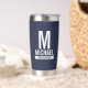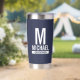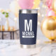 Moderno Minimalista Personalizado Monograma y Regalos de nombres Este diseño presenta el monograma, nombre y título del groomsman personalizado en negrita blanca moderna sans serif estilo tipo de letra sobre fondo azul marino. También perfecto para el mejor hombre y más.
