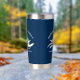 Estos tumblers acuáticos térmicos azul marino y blanco son perfectos para sus vacaciones familiares de crucero, y cuentan con una estilizada rueda de barco con olas oceánicas.