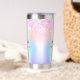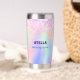 Fondo holográfico de color rosa, morado y verde menta. Decorado con confeti. Personalice y agregue su nombre y un texto (o elimine si no lo desea)