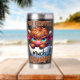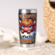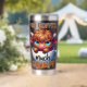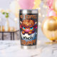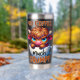 A funny and sarcastic colorful design showcases an adorable highland cow perched in an empty coffee cup. With a grumpy expression, big blue eyes, and brown fur, the cow adds a charming touch. The vibrant text reads, "No coffee much grumpy." This design is featured on a variety of products, making it a perfect gift for coffee enthusiasts.