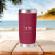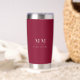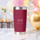 Color del fondo de Borgoña. Personalice y agregue sus iniciales de monograma y nombre completo. Texto blanco. Tanto para él como para ella.