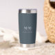 Color de fondo gris de carbón vegetal. Personalice y agregue sus iniciales de monograma y nombre completo. Texto blanco. Tanto para él como para ella.