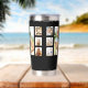 Un fondo negro. Personalice y agregue un collage de 7 fotos, iniciales de monograma y nombre completo. Texto blanco.