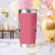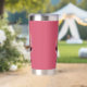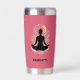 Un fondo rosa. Una mujer haciendo una pose de yoga, giros multicolores en el fondo. Personaliza y agrega tu nombre.
