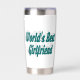 Tumbler con la mejor novia del mundo en texto verde 3D.