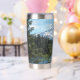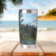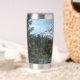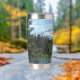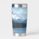 Un moderno vaso de agua de acero inoxidable y termal para sus bebidas calientes o frías que incluye una imagen panorámica y paisajística del monte Hood cubierto de nieve y un tranquilo lago en un bosque verde, ubicado en el estado noroeste del Pacífico de Oregón. ¡Hace un gran recuerdo de viaje!