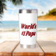 Tumbler con el primer papá de World en un texto en burdeos 3D.