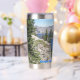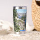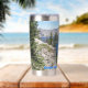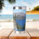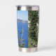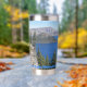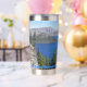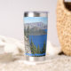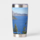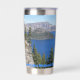 Un tumbler termal de acero inoxidable y moderno para sus bebidas calientes o frías que incluye una foto de envoltura de la Isla Mago y el lago azul zafiro en el pintoresco Parque Nacional Crater Lake, Oregón. ¡Hace un gran recuerdo de viaje!