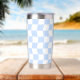 This drink bottle tumbler features a pastel blue and white checkerboard design, with a retro wavy distortion. You can edit the colors in the Zazzle design tool. Makes a great birthday gift for your teen daughter. ••• For more groovy patterns, visit my store Zazzle.com/JessicaAmberArtist ••• For custom orders, message me on Zazzle