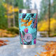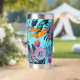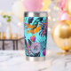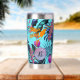 Audaz Patrón de Foliage Tropical con un colibrí estilizado en tangerina en negrita. Este diseño luminoso y colorido es perfecto para el verano y alegra cualquier día de invierno. Coincida con una delantal o toalla de cocina en el mismo diseño. Añada su monograma al tumbler aislado para personalizarlo y hacerlo suyo.
