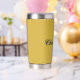 This personalized metallic gold insulated tumbler combines style and functionality for everyday use. Customizable with any name, it keeps beverages hot or cold for hours while providing a sleek, modern look. Perfect for work, school, travel, or gifts, this durable tumbler blends convenience with personalized elegance.