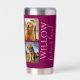 Pet memorial insulated tumbler with custom photos of a loved pet that passed away, personalized pet names and the message forever loved. This unique memorial pet loss tumbler is the perfect gift for yourself ,family or friends to honor those loved. Quote "forever loved". See 'personalize this template' to edit the pet photos, name and message. Pet Sympathy keepsake tumbler for dog loss remembrance.