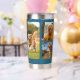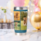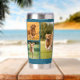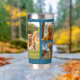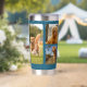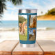 Pet memorial insulated tumbler with custom photos of a loved pet that passed away, personalized pet names and the message forever loved. This unique memorial pet loss tumbler is the perfect gift for yourself ,family or friends to honor those loved. Quote "forever loved". See 'personalize this template' to edit the pet photos, name and message. Pet Sympathy keepsake tumbler for dog loss remembrance.