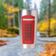 Red telephone box illustration inspired by the iconic London phone box. Retro phone booth and British icon perfect for travel lovers. Great as poster, tee, or sticker.