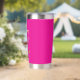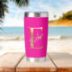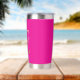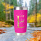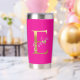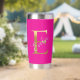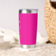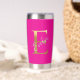 The striking color combination of hot pink and gold makes this tumbler a confident, stylish statement piece.