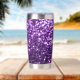 Un purpurina morado enciende un Tumbler Aislado con nombre personalizado. Personaliza con tu nombre. Los hermosos purpurinas brillantes y glamorosos brillan. ¡Foto de chispas, no purpurina real!