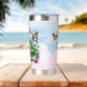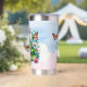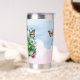Arte de tai personalizado lindo que representa una rana sentada en una plataforma de lirios rodeada de flores y mariposas con vibraciones acuáticas.